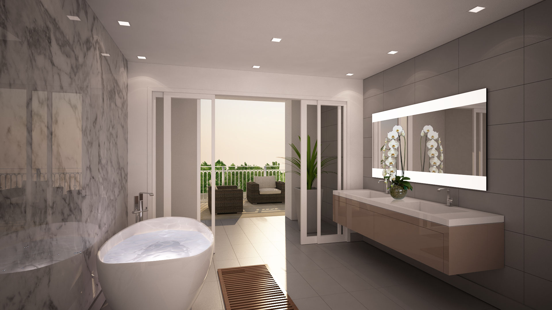- Oversized spa-inspired bathrooms with separate shower and bathtub